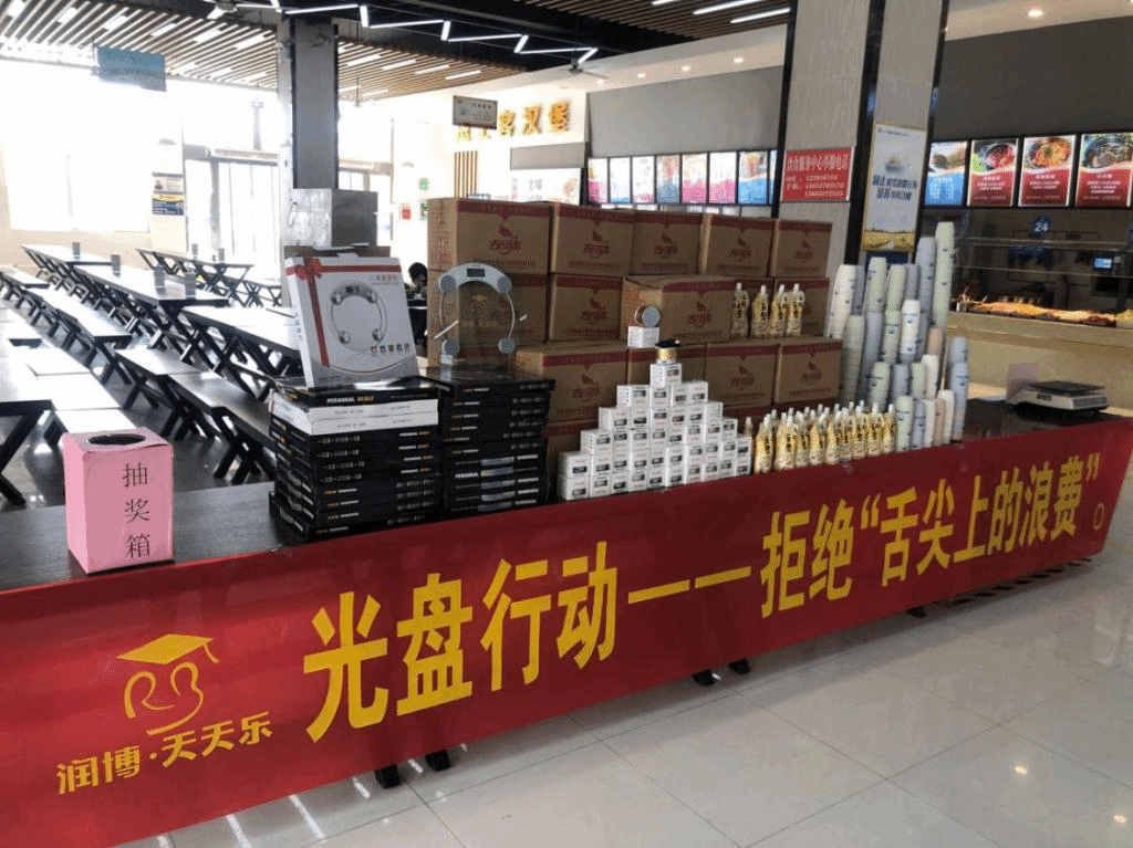 开展“光盘奖励”活动,食堂光盘换奖券以抽奖的方式来抽取奖品。学生吃完饭后,只要将光盘放至餐盘回收处,即可获得一张抽奖券,可以抽取人体秤,蓝牙小音箱以及豆浆,牛奶杯等作为奖励。