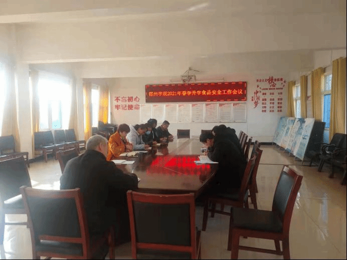 3月2日下午,宿州学院2021年春季开学食品安全工作会议在后勤三楼会议室召开。参加会议的有后勤管理处党政领导、饮食管理中心工作人员和三个食堂的管理人员。会议由后勤管理处处长周家华主持。