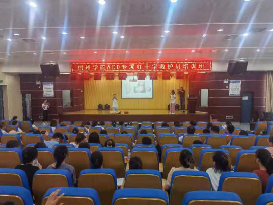 为贯彻落实《安徽省教育厅安徽省红十字会转发教育部办公厅中国红十字会总会办公室关于进一步推进学校应急救护工作的通知》文件要求,进一步提高我校突发事件处置水平和能力,抓实抓好师生安全工作,构建和谐平安校园,2021年6月19—20日,我校邀请市红十字会培训中心王亚莎、梅莎莎两位专家来我校开展应急救护培训工作。两位老师从现场救护原则、创伤救护和心肺复苏的理论和操作进行了讲解和示范。