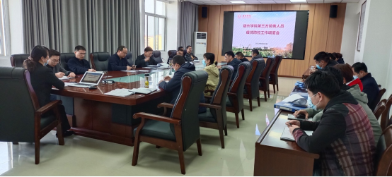 3月28日,后勤与基建管理处在逸夫楼A504召开宿州学院第三方劳务人员疫情防控工作调度会,校党委委员、副校长杨维志,后勤与基建管理处全部科级以上人员及保卫处主要负责人,宿州学院16家第三方劳务公司参加会议,会议由杨维志主持。