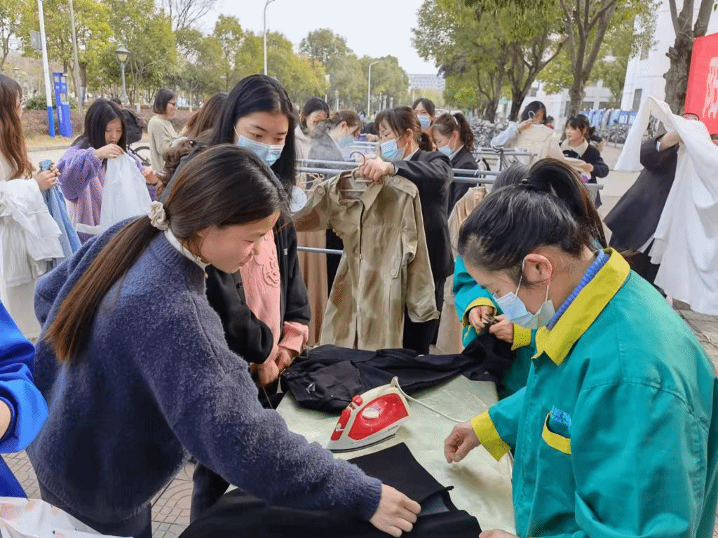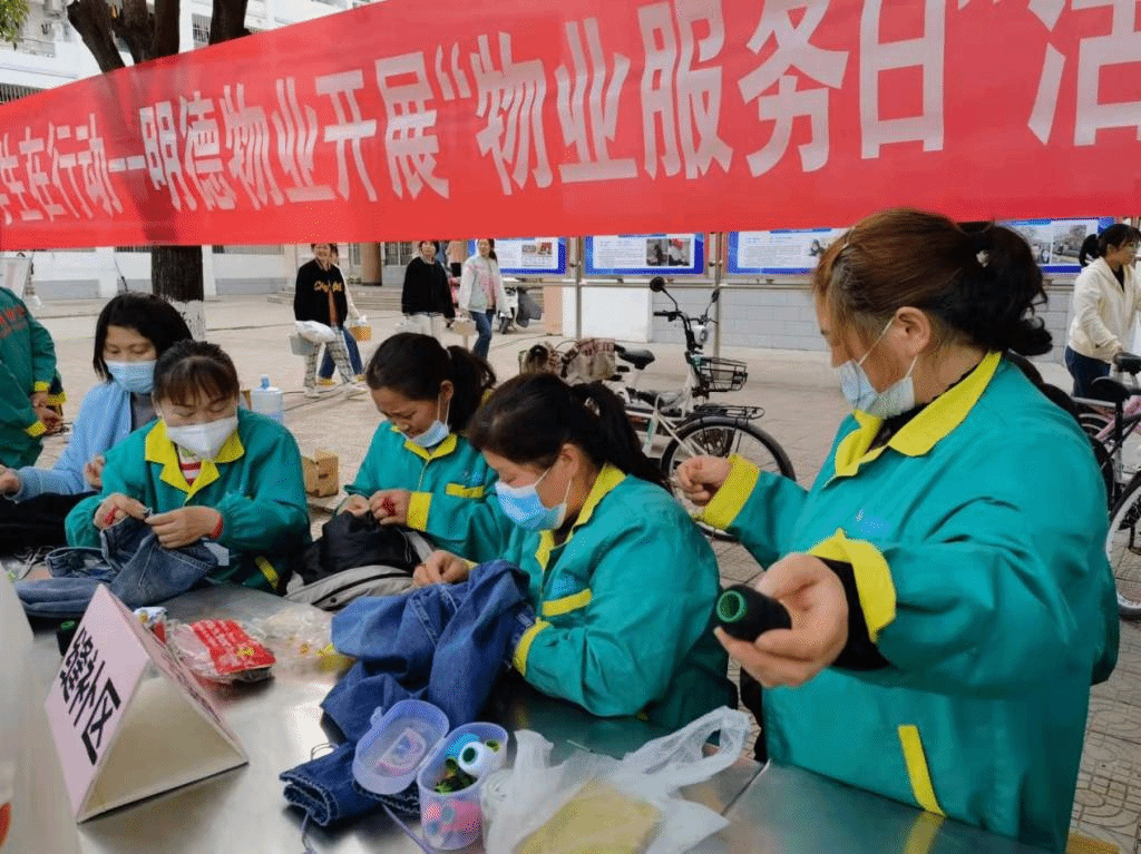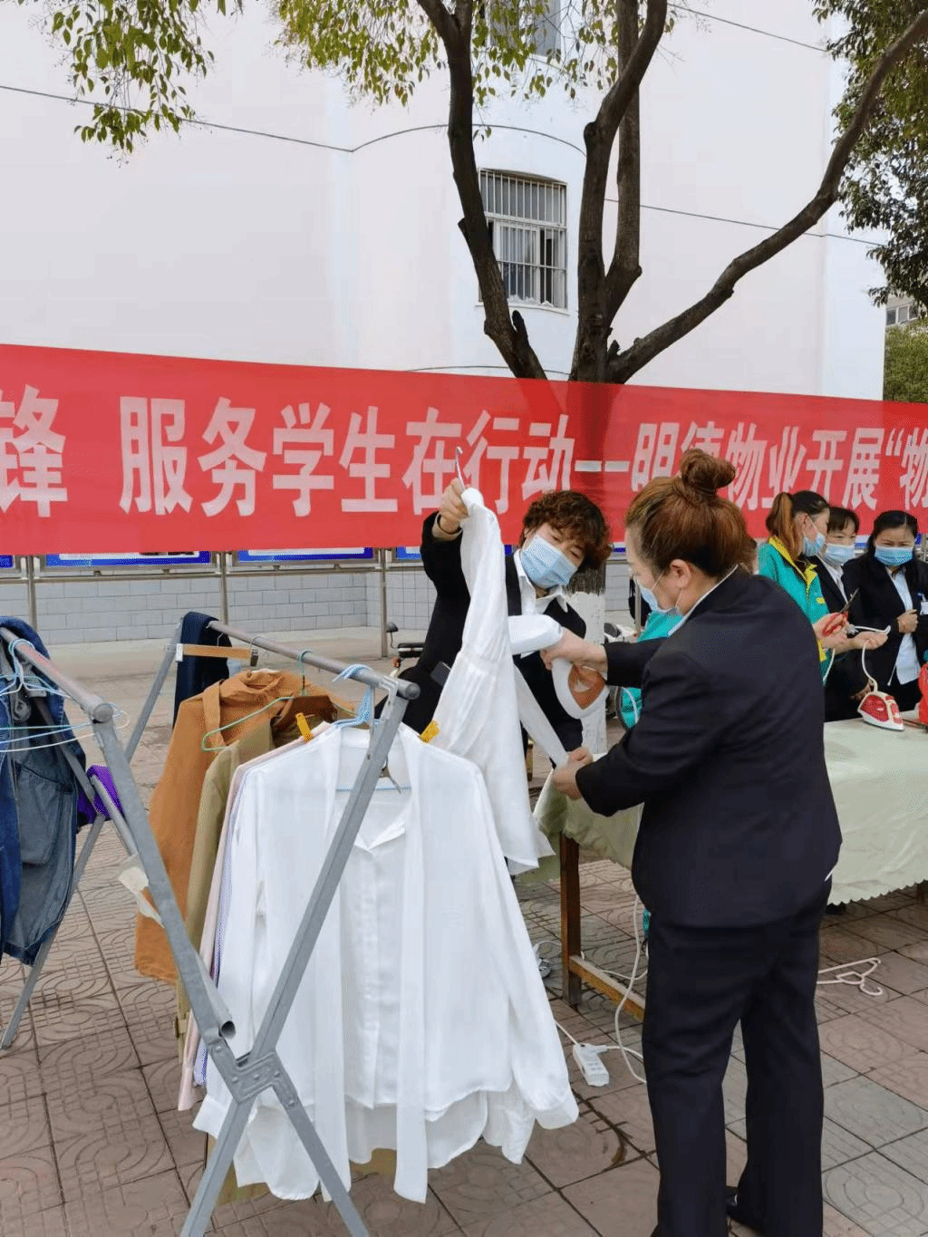 阳春三月,春意渐浓,为弘扬雷锋精神,解决学生生活难题,宿州学院后勤基建管理处学生公寓管理服务中心、明德物业宿州学院项目部于3月26日下午开展了“物业服务日”活动,在一号楼东侧免费为学生缝补、熨烫衣物,维修自行车,改裤脚等。