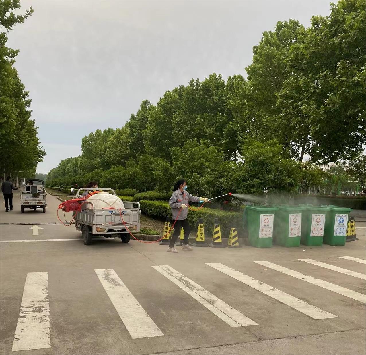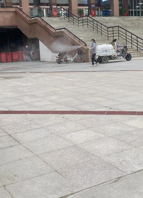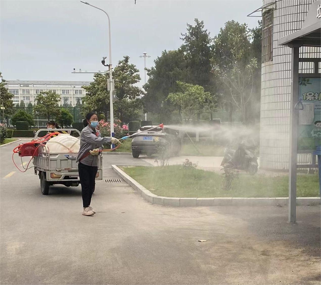 物业人员携带消杀工具,对学校教师、办公室、走廊、绿化带等公共区域喷洒了灭蝇药物,并重点针对校园内植被茂密处、阴暗角落、垃圾桶、污水管井、化粪池等重点区域进行了蚊虫消杀,并进行彻底清扫。