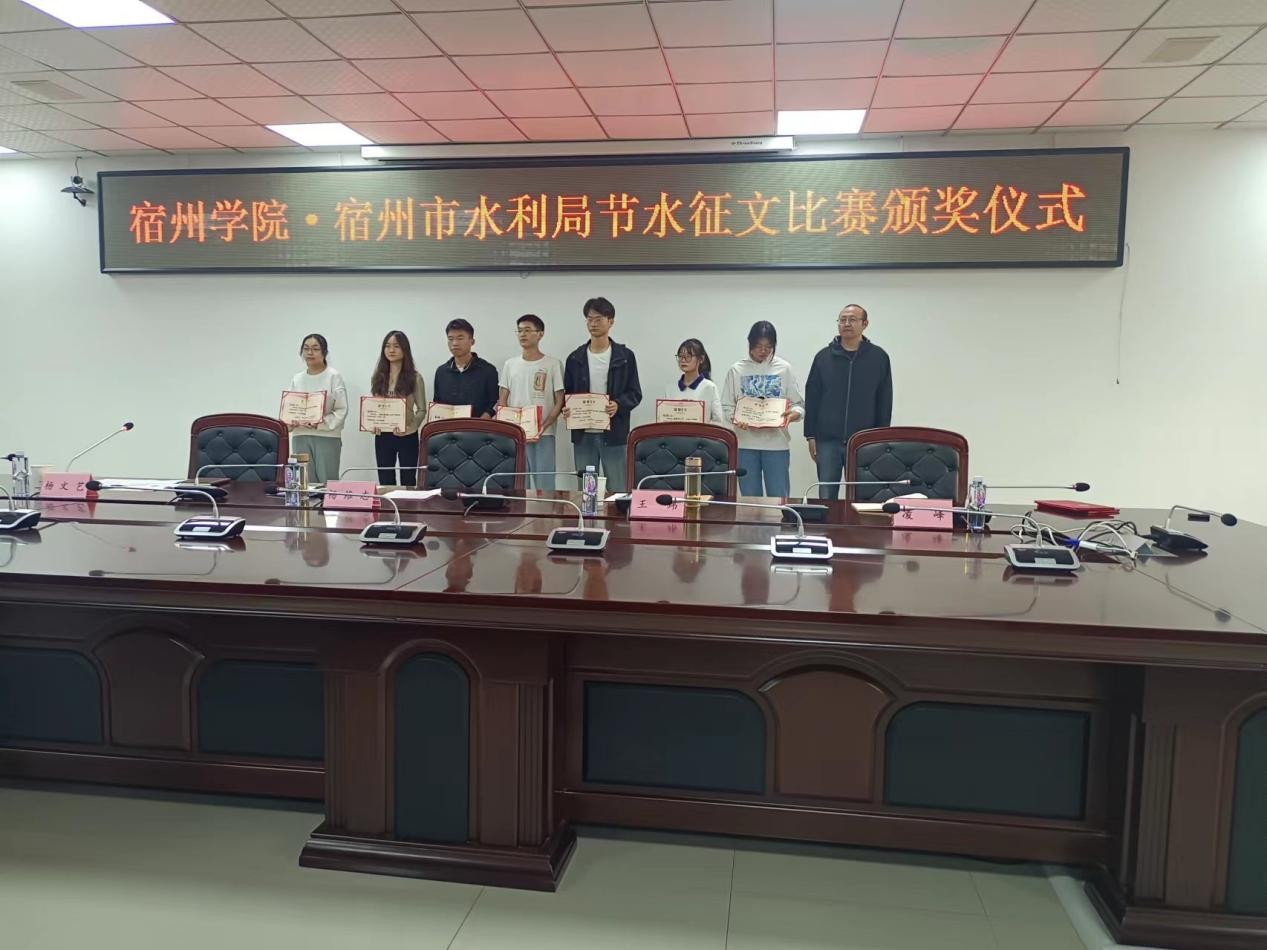 为深入贯彻习近平生态文明思想,推进实施国家节水行动,培养大学生树立节水、爱水、惜水理念,建设节约型校园,结合2023年“世界水日”“中国水周”活动,宿州市水利局与宿州学院联合开展了节约用水征文活动。10月24日下午,在逸夫楼第一会议室进行节水征文颁奖活动。宿州学院副院长杨维志、宿州市水利局总工程师王玮等相关人员、团委书记凌峰、后勤与基建管理处处长杨文艺和全体人员、学生代表参加了此次活动。