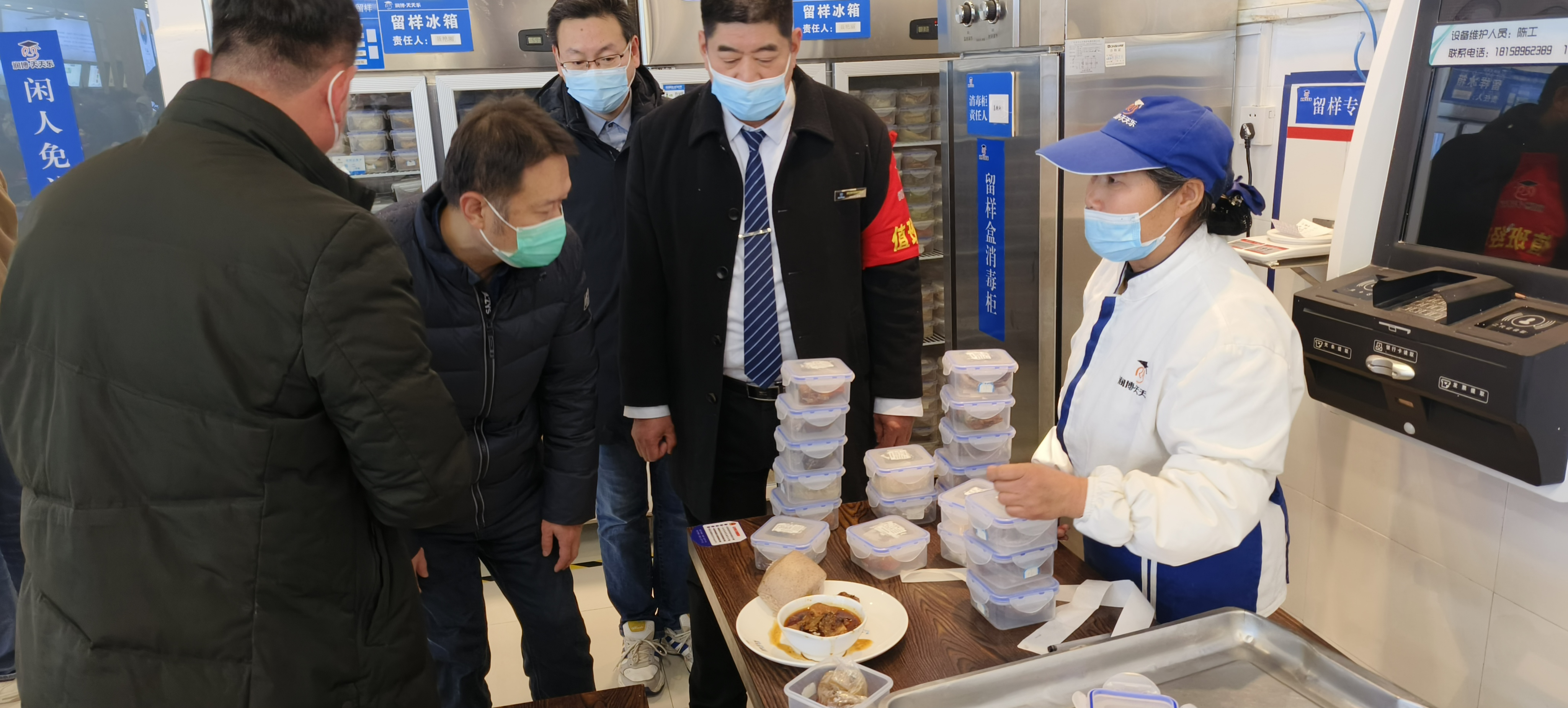 杨文艺向督查组介绍了学校食堂的基本情况。而后督查组深入食堂各个售卖窗口查看菜品质量、询问学生饭菜价格和服务态度并亲自品尝了食堂的免费汤,现场检查了食堂的原材料库房、冰箱、加工间、清洗间、消毒柜、食物留样和各个灶台的燃气使用情况,并查阅相关检查排查记录资料。对食堂的整体食品安全和燃气使用安全情况给予了正面的评价,同时指出了存在的问题。