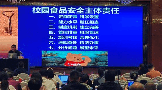 培训会主要围绕《中华人民共和国食品安全法》、《餐饮服务食品安全操作规范》、《餐饮服务卫生通用规范》、《学校食品安全与营养健康管理规定》等相关法律条文进行解读学习。并组织了“学校食品安全管理人员履职与管理制度建设”和“校园食品安全管理与舆论应急处置”两个课题开展了集中讨论与交流。