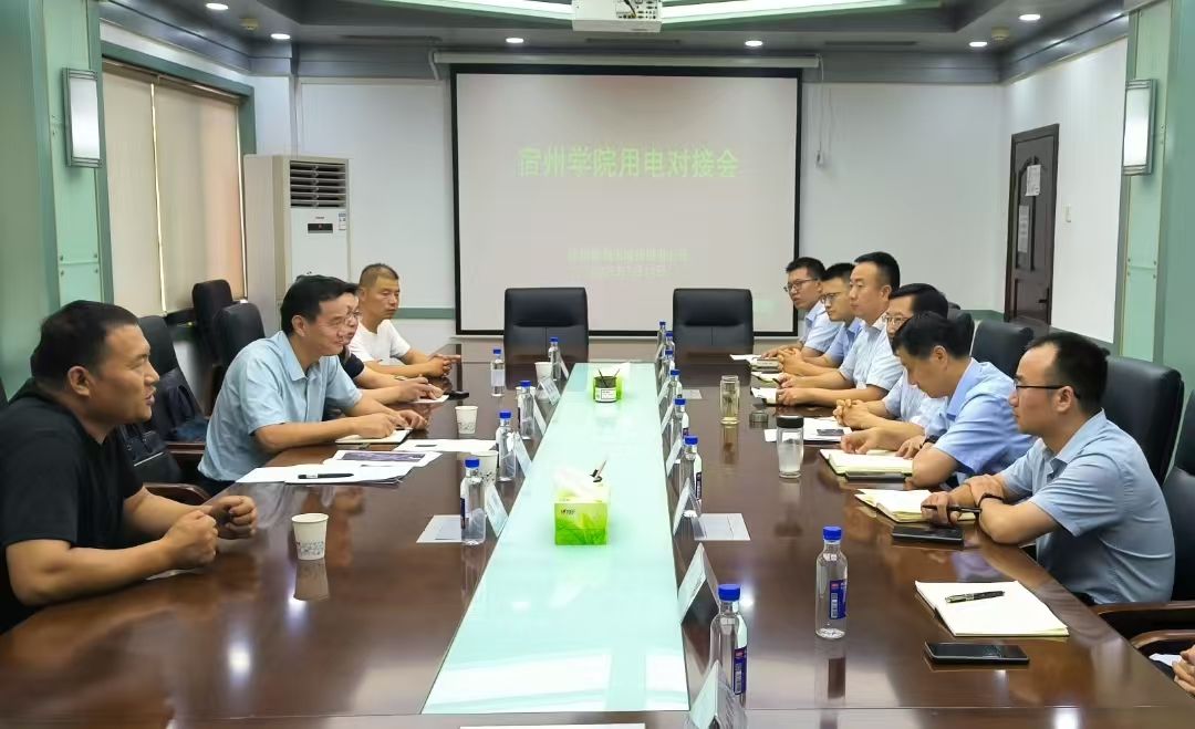 为深化落实宿州市“4510”校地联合科创行动要求,切实保障校园电力供应安全稳定,7月14日,宿州学院后勤与基建管理处处长王绍卫、副处长周霁野一行赴国网宿州城郊供电公司进行走访慰问,并召开用电安全专项对接会。国网宿州城郊供电公司总经理杨辉,副总经理季崇参、王永鹏,供电运检部主任梁爱国,朱仙庄供电所所长马腾飞等相关业务部门负责人参加会议。