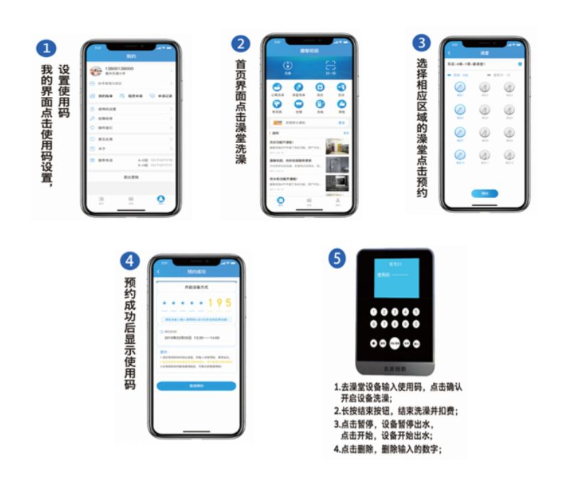 为解决错时、错峰洗浴问题,浴池对原有洗浴系统进行了升级、改造,增加了预约功能,学生在宿舍可以直接进行预约,使用说明如下: