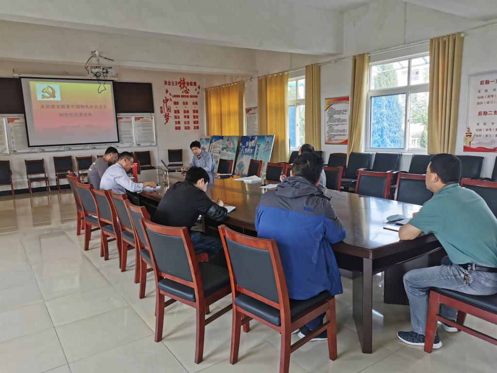 5月15日上午,后勤二支部书记李建新在三楼会议室以《从抗疫实践看中国特色社会主义制度的显著优势》为题,为二支部全体党员讲党课。