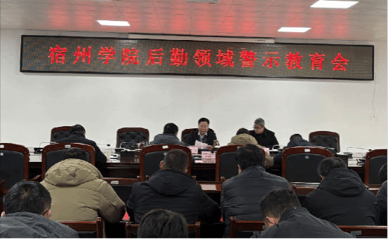 1月14日下午,宿州学院在逸夫楼第一会议室召开后勤领域警示教育会。会议由宿州学院党委常委、副校长杨维志主持,纪委办公室主任杨杰及后勤与基建管理处全体人员参加。
