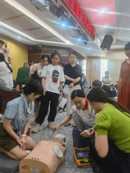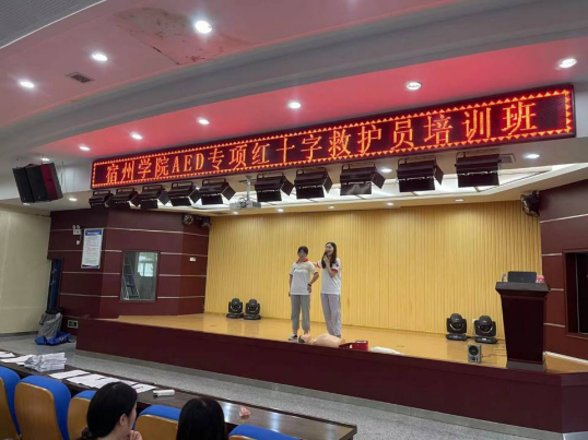 为贯彻落实《安徽省教育厅安徽省红十字会转发教育部办公厅中国红十字会总会办公室关于进一步推进学校应急救护工作的通知》文件要求,进一步提高我校突发事件处置水平和能力,抓实抓好师生安全工作,构建和谐平安校园,2021年6月19—20日,我校邀请市红十字会培训中心王亚莎、梅莎莎两位专家来我校开展应急救护培训工作。两位老师从现场救护原则、创伤救护和心肺复苏的理论和操作进行了讲解和示范。